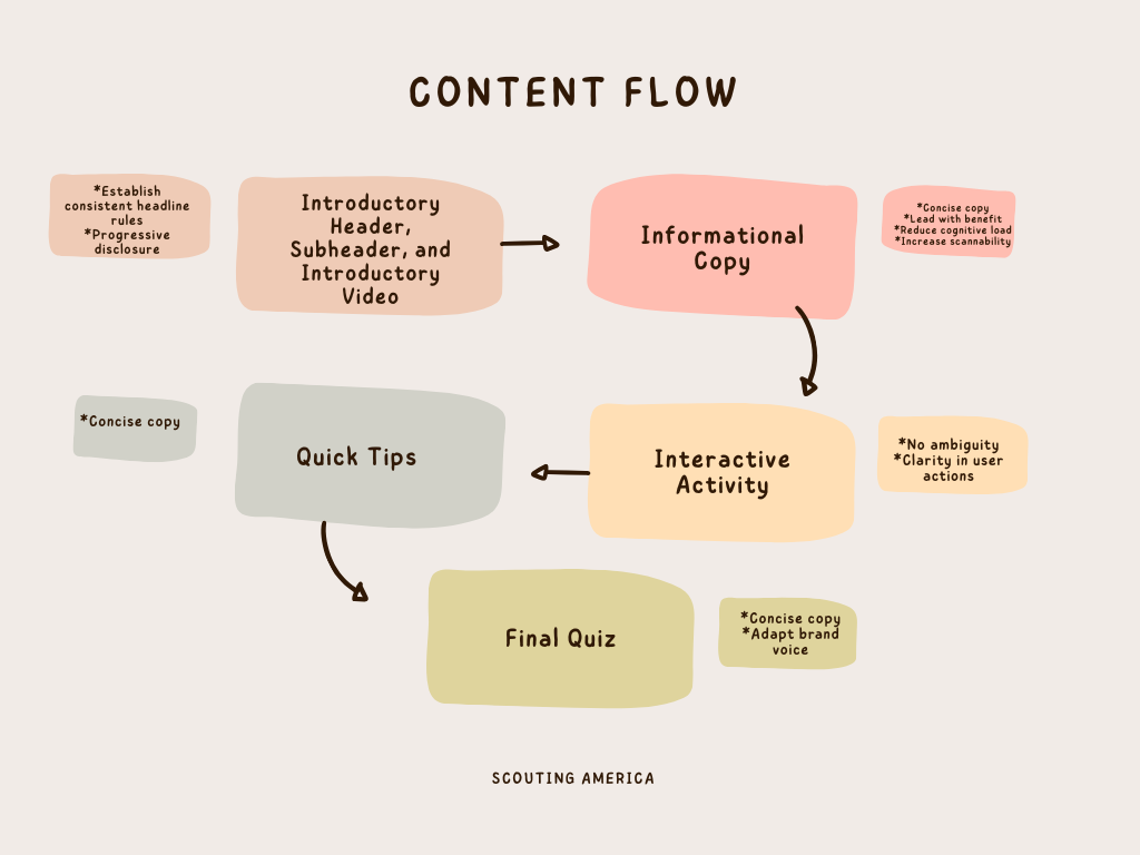 Lead content strategy for 10+ webpages, restructuring information architecture to ensure intuitive navigation and adherence to UX best practices for an audience of 1 million+ Scouts ages 11-18.